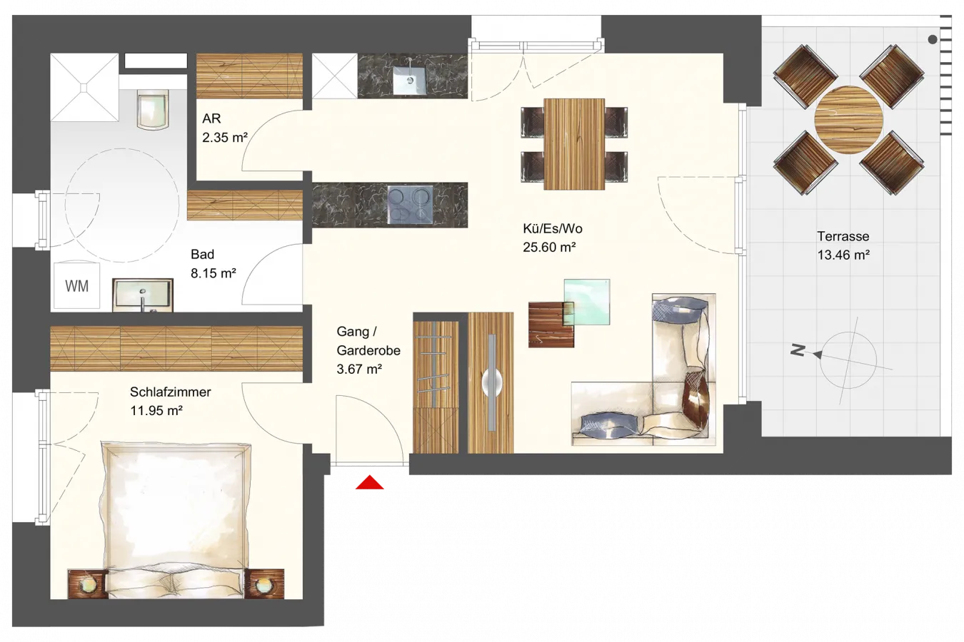 | Terrasse | 13,46 m² |