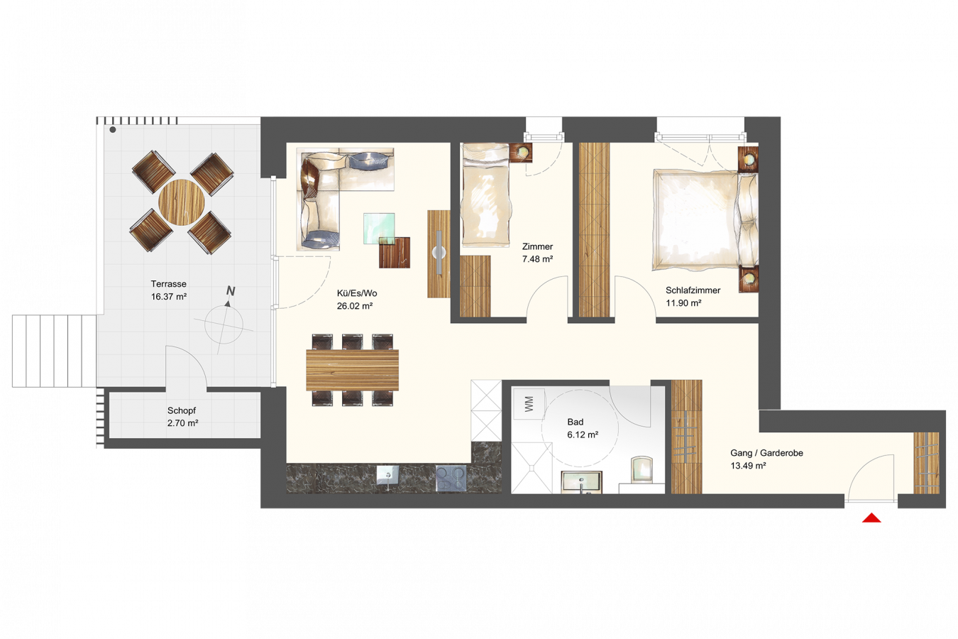 | Terrasse | 16,37 m² |