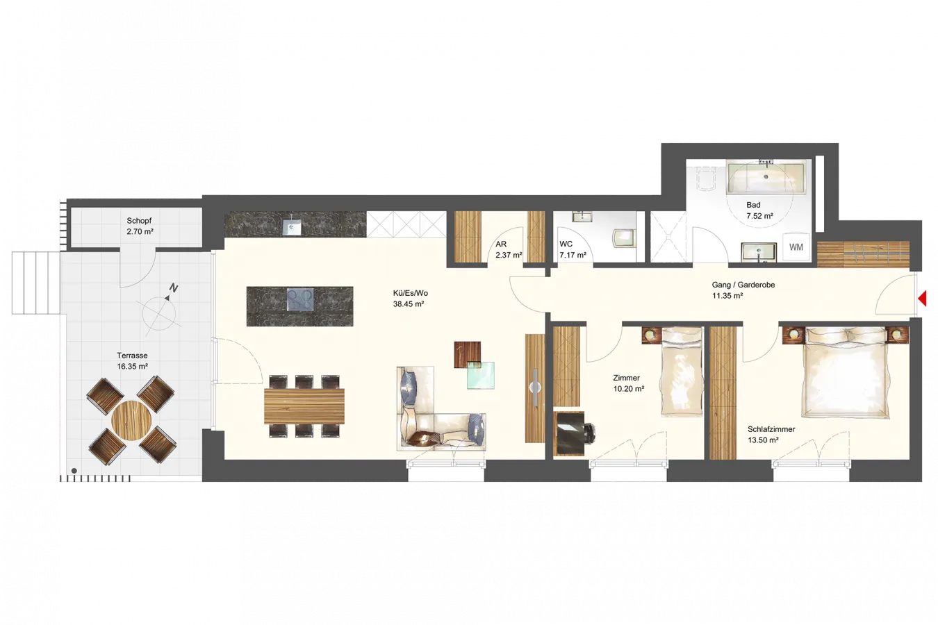 | Terrasse | 16,35 m² |
