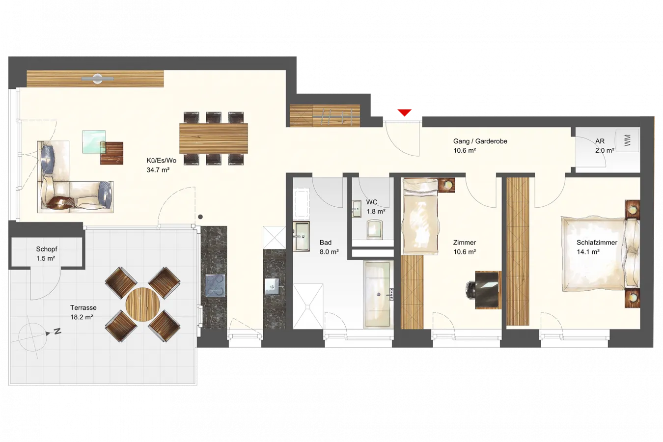 | Terrasse | 18,20 m² |