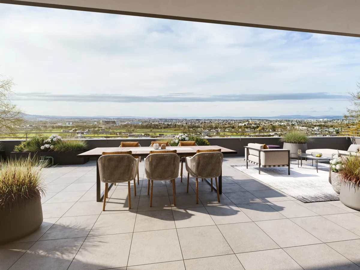 Was gibt es Schöneres, als in den eigenen vier Wänden anzukommen, abzuschalten und sich einfach wohlzufühlen? Großzügige, modern gestaltete Wohnungen mit viel Tageslicht und ästhetischer Raumgestaltung bieten Entspannung und Rückzugsmöglichkeit. Die großzügigen Terrassen mit ihrem beeindruckenden Weitblick erzeugen ein Gefühl von Freiheit und lassen den Wohnraum größer wirken. Mit hochwertiger Ausstattung und einem durchdachten Energiesystem schaffen wir einen angenehmen Wohlfühlbereich mit behaglichem Raumklima.